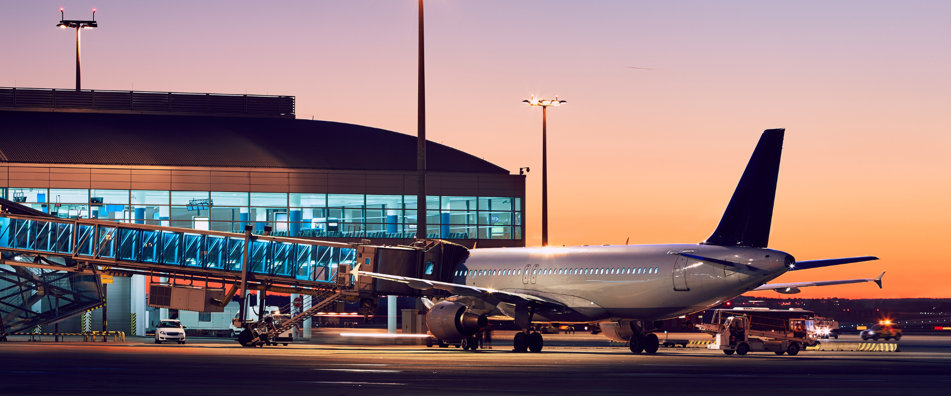 Image shows an airplane being prepared to be boarded at an airport with an orange sky in the background. ACI Unveils Roadmap for Smarter Airport Partnerships, MTB Events.