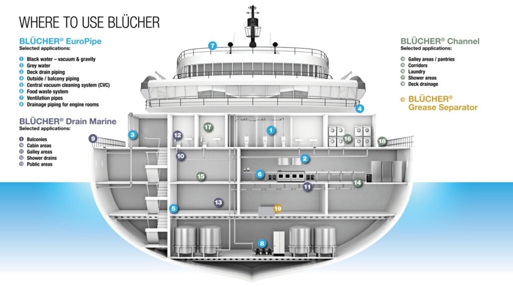 The partnership reflects BLÜCHER’s continued focus on expanding its marine footprint in Southern Europe through established local specialists. The company has long supplied drainage systems to thousands of vessels globally, across sectors including cruise, ferry, offshore, naval and commercial shipping, and works with some of the world’s leading shipyards.